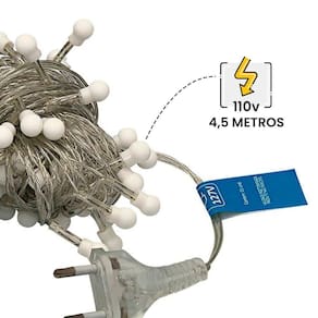 Contando com 40 bolinhas de LED, é versátil e fácil de usar, sendo perfeito para decorar sua casa, jardim, festas ou eventos especiais. Com um design delicado e elegante, ele adiciona um toque de sofisticação à sua decoração. As luzes LED de baixo consumo energético proporcionam um brilho suave e agradável, criando um ambiente acolhedor, além do fio transparente do cordão permitir que as luzes se destaquem, enquanto as bolinhas brancas trazem um charme especial, conta também com um interruptor e 8 funções/tipos de iluminação, com variadas combinações.
