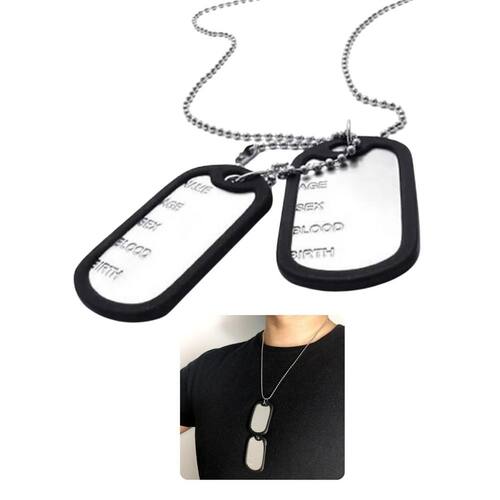 Cordão Placa Identificação 60cm Exército Dog Targ Emborrachado Licenciadores Gravação Aço Inox
