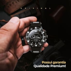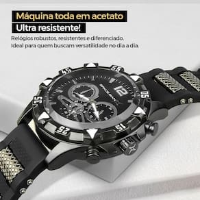 - 1 Relógio Analógico Masculino Orizom Spaceman X: Maquinário em aço inoxidável com pintura eletrostática preta, mostrador elegante e pulseira ajustável em silicone.