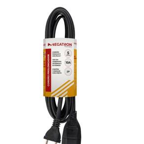 Cordao Prolongador Pp Plano 10a 0,75 5m Preto Apresentamos os cordões prolongadores 10A, produtos de qualidade e que garantem segurança aos usuários, atendendo ao novo padrão brasileiro de plugues e tomadas (NBR 14136). Modelo: Cordão Prolongador 10A Megatron; Amperagem: 10A / 250V; Espessura do cabo: 0,75mm; Número de tomadas: 01; Ideal para: Para prolongar a tomada dos equipamentos para distancias longas; Ean: 7899278904171