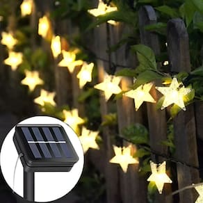 Cordão Solar LEDs Lâmpadas Luzes Estrelas Amarela Natal 5m -