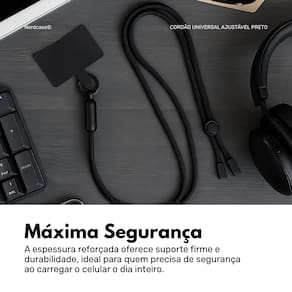 CordãoO Cordão Universal da Nerdcase é a escolha ideal pra quem busca funcionalidade com estilo. Produzido com material resistente e ferragens em termoplástico reforçado, ele oferece segurança e leveza no uso diário. Com 75cm de comprimento e 0,5mm de espessura, é compatível com qualquer modelo de celular por meio da base universal inclusa. Ideal para o dia a dia, shows, rolês e até no trampo. Um acessório prático e confiável com o DNA da Nerdcase.