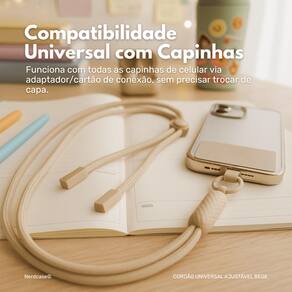 Leve praticidade para o seu dia a dia com o Cordão Universal da NERDCASE! Produzido em poliéster resistente, ele é compatível com qualquer modelo de celular com capa, e acompanha base universal. Com dimensões de 75cm de comprimento e 0,5mm de espessura. A cor bege combina com qualquer estilo, oferecendo um visual discreto e moderno. Com ajuste de comprimento, é ideal para usar no pescoço ou transversal, em passeios, shows, viagens ou no corre diário.