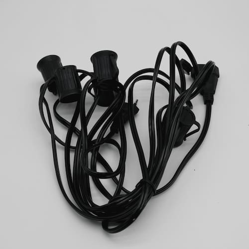 Cód: 80168Cordão Varal de Luzes Eco Preto 5E27 5M IP54Soquete: 5*E27 (Lâmpadas não inclusas)Comprimento: 5mDistância entre os soquetes: 95cmDimensões soquete: 4x3,5cm (AxL)Cor: PretoTensão: Bivolt*Uso Interno e Externo