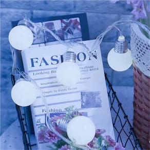 Iluminação de fadas. Este conjunto oferece 20 lâmpadas LED brancas brilhantes em um cabo transparente de 4 metros espaçadas uniformemente.