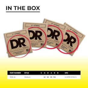 - Todas as cordas do conjunto são revestidas com uma versão vermelha do revestimento K3 patenteado da Dr