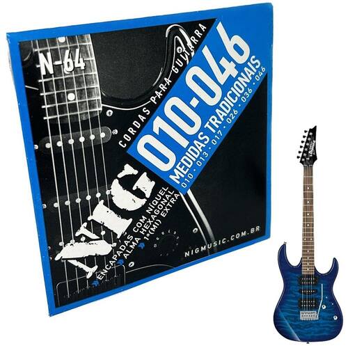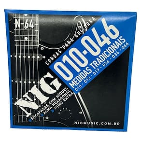 Cordas Guitarra Nig 10-46 + palheta + corda extra E mi Distribuidor Autorizado Está a procura de cordas de qualidade para a sua guitarra A linha de encordoamentos NIG vão te surpreender com o brilho no som, sustain e durabilidade. Proporcionam um timbre perfeito por músicos em todo o Brasil - Tensão .010 - Leve - Encapadas com Nickel - Alma Hexagonal - Estanhadas e Polidas - contém 6 cordas + 1 corda E mi extra + 1 palheta Marca: Não Informado Ean: 7806127132982