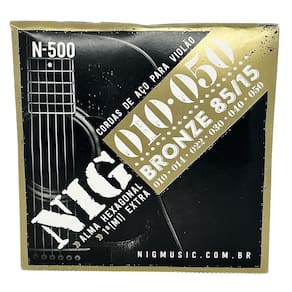 - contém 6 cordas em aço + 1 corda extra e mi + palheta - bordões cobertos em bronze 85/15 clássico Marca: Nig N500