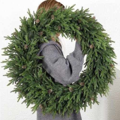 - Aparência exuberante e completa: dê um toque de alegria natalina à sua casa com nossa exuberante coroa de Natal em folha de pinheiro. Feita com galhos de pinheiro artificiais de alta qualidade e adornada com lindas pinhas, esta porta tem uma aparência vibrante e completa que dura toda a temporada