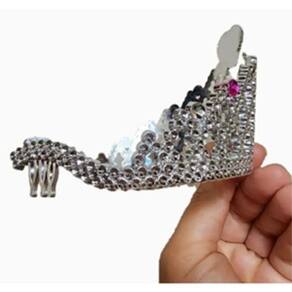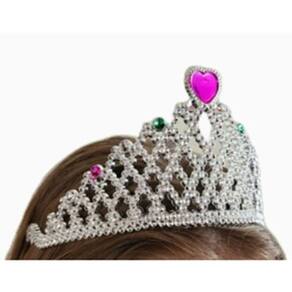 Tiara de princesa com detalhe de coração na frente e pentinhos para melhor fixação nos cabelos. Cor: Prata com detalhes em rosa e verde Tam. Aprox. 8,5 de altura frente X 11cm de largura Pentinhos: 3 dentinhos com aprox. 1,5cm de cada lado. Marca: Casa João E Maria