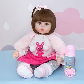 Corpo de algodão macio realista Bonecas moda princesa menina boneca bebê renascido brinquedos Cosplay Rabbit Toddler Presentes de aniversário| Bonecas Os produtos que enviamos são baseados principalmente na cor da imagem. (Cor da imagem) -Corpo: corpo de pano com algodão PP, não pode colocar na água. -Tamanho do bebê: 18 polegadas cerca de 48 cm - Olhos: olhos acrílicos, parece tão realista, não pode piscar. -Cabelo: Cabelo colado de alta qualidade. -Estrutura:Cabeça, 3/4 membros são todos feitos de silicone. Produção de matéria-prima de vinil macio importado, não tóxica; membros de boneca podem ser ativos, podem sentar ou mentir, não podem ficar em pé, falar ou alimentar. -Conteúdo do pacote: Boneca, roupas, chupeta magnética, garrafa de leite, certidão de nascimento.