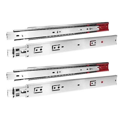 Essa corrediça possui capacidade de carga de até 25 kg, sendo resistente e durável, garantindo uma operação confiável e sem falhas. Seu sistema de amortecimento integrado permite um fechamento suave e silencioso da gaveta, evitando batidas e danos.