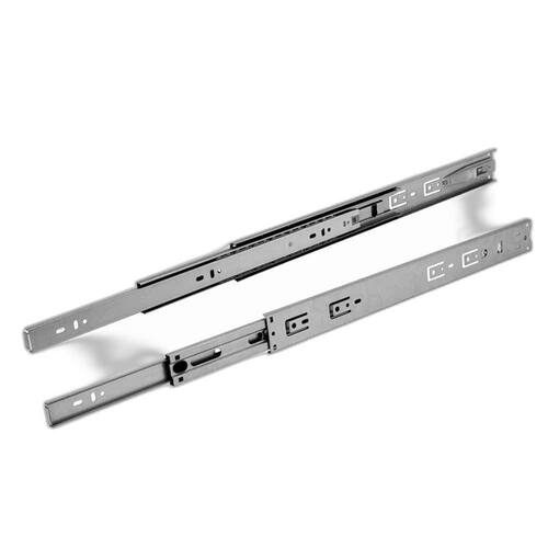 Marca: FGVTN Acabamento: Zinco acetinado Material: Aço relaminado Capacidade: 35 kg par Corrediça telescópica com sistema de abertura One-Touch, que dispensa a utilização de puxador. Deslizamento através de de aço. Peça única de montagem lateral e autotravante no final do curso com travas que permitem a retirada da gaveta. Recomendações de uso: Pode ser utilizada em armários de cozinhas, escritórios, closets, quartos, banheiros, lavanderias, móveis em geral ou em prateleiras retráteis/extensíveis. Atenção: Imagem meramente ilustrativa Marca: Não Informado
