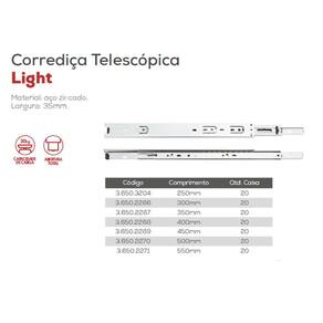 Produto possui rolamentos via de aço que proporciona deslizamento suave, preciso e resistente. Produzido em aço laminado a frio com tratamento de eletro-zinco