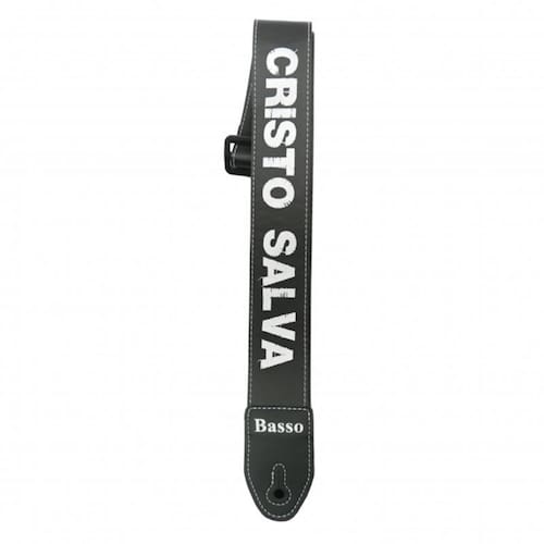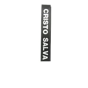 Correia em sintético preto com SERIGRAFIA CRISTO SALVA".