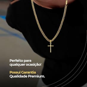 Este conjunto exclusivo de acessórios masculinos é a escolha perfeita para quem busca destacar-se com elegância e sofisticação. Banhado a ouro 18k, o kit inclui uma corrente e uma pulseira estilo grumet, complementadas por um imponente pingente de cruz. Perfeito para homens que valorizam a qualidade e desejam transmitir uma imagem de força e determinação.