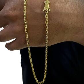 Corrente Cadeado 4mm Fecho 750 Luxo Banhado a Ouro 18k Detalhes do Produto: Material: ligas metálicas de alta qualidade, especialmente tratadas para fixação e absorção do ouro, com acabamento em verniz protetor. Aparência: visual idêntico ao ouro maciço. Produção: artesanal, com atenção meticulosa aos detalhes. Banho: 10 camadas espessas de ouro 18k, finalizadas com verniz antialérgico . Elos: soldados varia conforme o modelo . Pedras: zircônias brilhantes cravejadas quando aplicável . Tamanhos Disponíveis: Cordões Masculinos: 70cm padrão e 60cm sob consulta/Pedido Via Chat . Cordões Femininos: 50cm padrão e 45cm sob consulta/Pedido Via Chat . Pulseiras: 21cm padrão ; tamanhos de 18cm a 23cm sob consulta/Pedido Via Chat. Pingentes: conforme imagens; consulte para mais detalhes via chat. Espessuras Recomendadas para Cordões / Pingentes: P: 1mm a 4mm M: 4mm a 8mm G: 6mm a 13mm Gg: 12mm a 18mm Incluso na Compra: Saquinho de organza para armazenamento seguro. Caixa elegante, perfeita para presente. Cupom de desconto para a próxima compra. Flyer com outros produtos da coleção. Carta de agradecimento personalizada. Adesivo da marca ToJoia18k. Informações Adicionais: : 6 meses termos acompanham o produto . Devolução: 7 dias para devolução sem questionamentos. Envio: despacho em até 24 horas úteis após confirmação do pagamento. Cuidados com a Peça: Evite contato com produtos químicos; aguarde o perfume secar antes de usar. Evite contato com shampoo, condicionadores e suor excessivo. Armazene em local seco, preferencialmente no saquinho de organza fornecido. Uso no mar e piscina é permitido; lave com água corrente e sabão neutro após. Por que Escolher a ToJoia18k Semi-joias luxuosas que combinam estilo, qualidade e sofisticação. Banho espesso de ouro 18k, garantindo brilho duradouro e acabamento impecável. Design exclusivo e produção artesanal, perfeitos para qualquer ocasião. Materiais premium que asseguram durabilidade. Ao escolher uma semi-joia ToJoia18k, você investe em qualidade, elegância e uma experiência única. Aguardamos sua compra Observação: pode ocorrer variação no fecho raramente . Imagens reais, sem edição. Qualquer dúvida, estamos à disposição para esclarecimentos. Marca: Não Informado Ean: 7894970277912