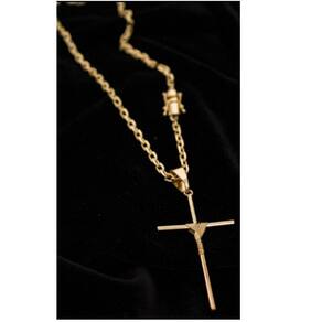 CORRENTE CADEADO TRAVA LATERAL DUPLA (3MM) & PINGENTE CRUZ FIO PALITO TRADICIONAL 3 (G) - BANHADO EM OURO 18K