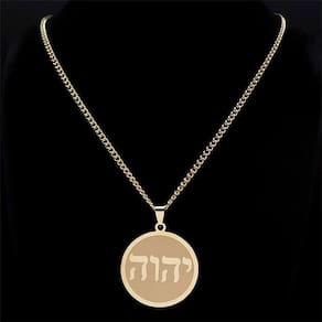 Corrente Bijuteria com pingente mesmo material, Tetragrama Nome De Deus Hebraico