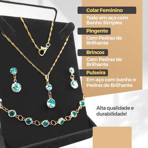Este conjunto é perfeito para adicionar um toque sofisticado ao seu guarda-roupa, realçando sua beleza natural. Combinando perfeitamente, o colar, brincos e pulseira criam um visual harmonioso que complementa seu estilo pessoal em qualquer ocasião, desde jantares de negócios até encontros românticos.