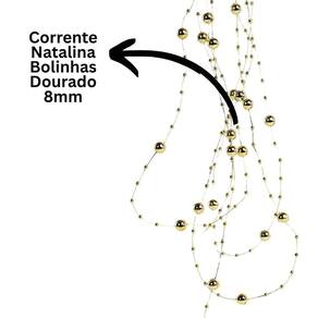 - 01 Unidade Corrente Colar de Contas Natalino Dourado (1,80m) 2 Tamanhos de Contas