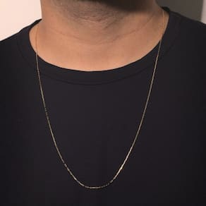 Por que essa corrente vale mais do que você está pagando? Porque ela é feita em ouro 18k verdadeiro, com acabamento impecável e um peso que transmite qualidade real. É a joia perfeita para quem quer se destacar com elegância, sem exageros. O tipo de peça que muitos vão notar, mas poucos vão ter.