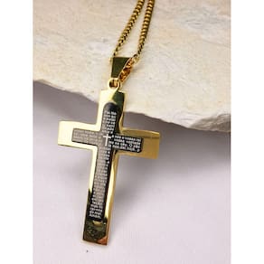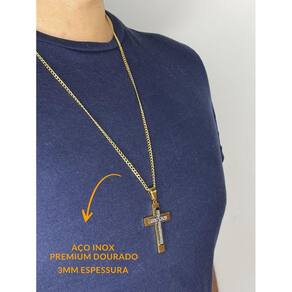 Corrente cordão masculino 70cm dourado pingente cruz oração pai nosso preto aço inox prova d'água Corrente cordão masculino 70cm dourado pingente cruz oração pai nosso preto aço inox premium prova d'água Cordão masculino em aço inox antialérgico com 70cm comprimento dourado com pingente cruz com oraçao do pai nosso, modelo perfeito para homens que querem ficar na moda e dar um up no visual. Cordão aço inox premium. ====================================== Fotos reais do produto na galeria Detalhes técnicos: Marca: visujóias Modelo: corrente cruz Cor: dourado Espessura corrente: 3mm Comprimento: 70cm Incluso: 1 unidade Material: aço inox Código do produto sku : 3400 : 6 meses Todas as peças possuem tratamento antialérgico =================================================== P:minha compra é segura R:toda compra que é feita aqui está em ambiente seguro, isso significa que se caso ocorra algum imprevisto faremos o estorno. R: sim. P: produto é a prova d'água R: sim, pode usar em piscinas e praias que não escurece. P: tem R: sim, todos os nossos produtos tem de 6 meses, contra defeitos de fabricação. Todas as informações de cuidados são enviados junto com o produto. P: posta em quanto tempo P: posso trocar se não servir R: sim, enviamos nosso contato junto com o produto para orientação sobre troca. P: posso devolver se não gostar R: sim, caso não goste do produto é só entrar em contato conosco que iremos orientá-lo como efetuar a devolução. Dúvidas Pergunte à vontade, estamos aqui. ficaremos felizes em responder rapidamente. Aguardamos sua compra e estamos ao seu dispor : Marca: Não Informado