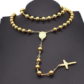 Corrente Cordão Masculino Terço Rosário Aço Banhado a Ouro