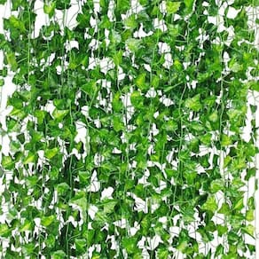 Hera artificial, também conhecida como trepadeira, é uma das folhagens mais procuradas para decoração de muros e paredes. Ideal para jardins verticais, arranjos suspensos, painel verde, casamentos, jardins artificiais, decoração de casa, festas temáticas e muito mais.
