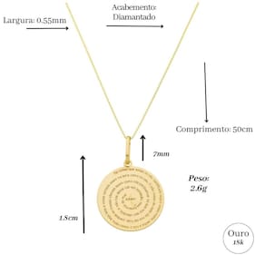 Seja bem-vindo(a) ao grupo DR Joias _x005F_x000D_ _x005F_x000D_ A DR joias traz a segurança que você precisa para comprar a sua joia online. Somos especializados em joias de Ouro 18k e de Prata 925, com experiência de quase 10 anos em vendas pela internet. _x005F_x000D_ _x005F_x000D_ Temos uma grande variedade de produtos para agradar a todos os estilos, proporcionando o que há de melhor em joias. Procuramos ir além de atender as suas necessidades, queremos superar as suas expectativas!!!_x005F_x000D_ _x005F_x000D_ Todos os nossos produtos, possuem certificado de garantia de autenticidade do material, que podem ser testados e comprovados em qualquer joalheria do Brasil._x005F_x000D_ _x005F_x000D_ Descrição da Corrente Feminina em Ouro 18k:_x005F_x000D_ Tamanho da corrente: 50cm_x005F_x000D_ Largura da corrente: 0.55 mm_x005F_x000D_ Peso total: 2.6 gramas_x005F_x000D_ Material: Ouro 18k_x005F_x000D_ Forma: MaciçaTamanho do Pingente: 2.5cm (Com o Passador)_x005F_x000D_ Acompanha embalagem para guardar a sua joia._x005F_x000D_ Elegância e espiritualidade se unem nesta deslumbrante Corrente Feminina Veneziana de Ouro 18k, adornada com um Pingente "Pai-Nosso" ricamente detalhado_x005F_x000D_ _x005F_x000D_ Ouro 18k é um metal precioso altamente valorizado por sua durabilidade, beleza e brilho. Joias feitas com ouro 18k apresentam 75% de ouro puro combinado com outros metais, produzidas em uma liga forte e resistente perfeita para uso diário.