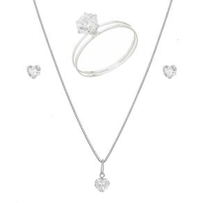 Corrente De Prata Conjunto Feminino Anel Brinco Pingente Colar Veneziana 50cm - Tamanho: 25