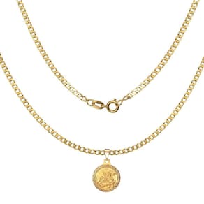 Corrente Feminina 40Cm 3Mm + São Jorge Folheada Ouro Cr631 Corrente Feminina 40cm 3mm 4Gr Fecho Boia + São Jorge 18mm 4Gr Beleza e Qualidade Sempre -marca: Wnbijouterias -modelo: Grumett -modelo Fecho: Boia -comprimento: 40cm -largura: 3mm -peso: 4+4Gr -SKU Vendedor: CR631 Descrição Técnica: - Produto com banho super resistente. - Processo de Folheação em 3 Camadas de Ouro 18k= 750 - Não descasca, não perde a cor, qualidade garantida - Grande tempo de durabilidade. - Acompanha Saquinho porta Joia. - Todas as Fotos são Reais do Produto Acompanha: Certificado de OBS: apenas para descascamento do banho da joia. A não cobre defeitos de mau uso, aranhões ou quebra de partes da joia. Contra Indicações: - Não usar creme, perfume, protetor solar e outros cosméticos por cima da joia. - Evitar banho de mar Devido a oxidação da água Salgada - Evitar banho de piscina Devido a oxidação do Cloro e outros produtos
