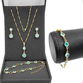 Este kit de colar, brincos e pulseira é uma escolha elegante e completa para quem procura acessórios femininos de qualidade. As fotos e o vídeo deste anúncio são REAIS dos produtos, garantindo total transparência em sua compra.