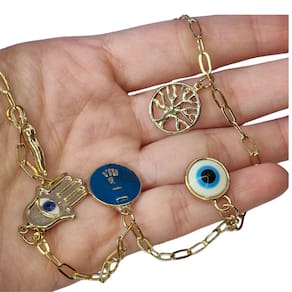 A Corrente Folheada Pingentes Amuletos Figa da Bialluz, é de resistência e durabilidade. A corrente possui 40 cm de comprimento, mas é totalmente regulável podendo ser usada por qualquer pessoa, que emanará ótimas energias em sua vida. É uma maravilhosa opção de presente, com certeza a pessoa que receberá sentirá muita gratidão por ter uma peça tão bela.