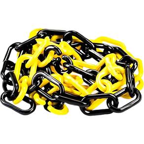 Corrente Pequena 100 Metros Preta e Amarela Plastcor A Corrente Grande Plastcor é fabricada em Polietileno de Alta Densidade (PEAD) e possui elos interligados por junções em formato de “S”, oferecendo resistência, leveza e alta visibilidade para criação de barreiras e guias em diferentes ambientes.