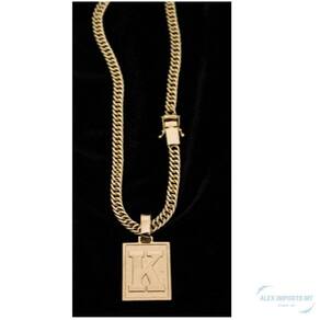 CORRENTE GRUMET DUPLO FECHO LATERAL DUPLO (7MM) & PINGENTE (LETRA) PERSONALIZADO (MEDIO) - BANHADO EM OURO 18K