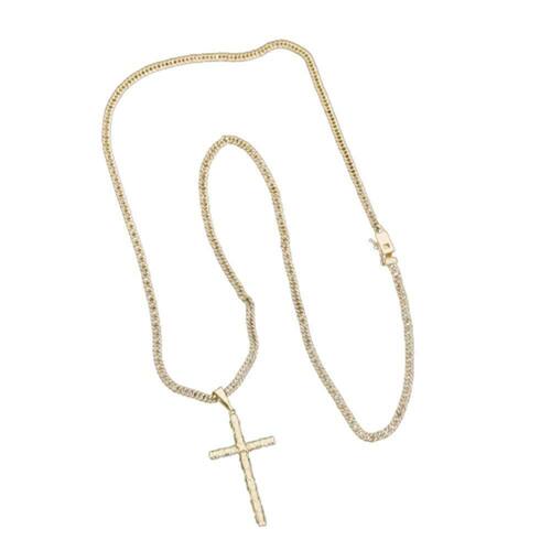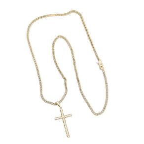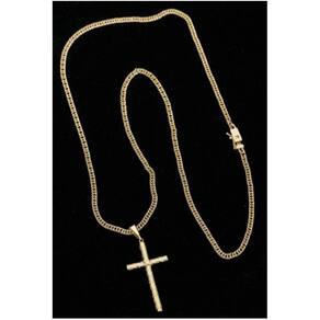 CORRENTE GRUMET DUPLO FECHO GAVETA LATERAL (3MM) & PINGENTE CRUZ PALITO DETALHADA (M) - BANHADO EM OURO 18K