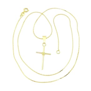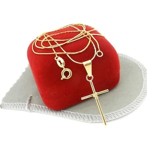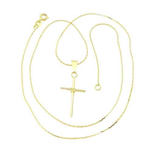 Corrente Masculina 50cm 0.5mm + Cruz 30mm Folheada Ouro CR593A Corrente Masculina 50cm 0,5mm 3Gr + Cruz 15x30mm 2Gr - Fecho Boia Beleza e Qualidade Sempre -marca: Wnbijouterias -modelo: Coreana -comprimento: 50cm 3Gr -largura: 0.5mm -modelo Fecho: Boia -pingente: Cruz 15x30mm - 2Gr -peso: 3+2Gr -SKU Vendedor: CR593A Descrição Técnica: - Produto com banho super resistente. - Processo de Folheação em 3 Camadas de Ouro 18k= 750 - Processo de Folheação em varias camadas Prata Pura 1000 - Não descasca, não perde a cor, qualidade garantida - Grande tempo de durabilidade. - Acompanha Saquinho porta Jóia - Todas as Fotos são Reais do Produto Acompanha: Certificado de garantia -garantia apenas para descascamento do banho da jóia. -A garantia não cobre defeitos de mau uso, aranhões ou quebra de partes da jóia. Contra Indicações: - Não usar creme, shampoo, perfume, protetor solar e outros cosméticos por cima da jóia. - Evitar banho de mar Devido a oxidação da água Salgada - Evitar banho de piscina Devido a oxidação do Cloro e outros produtos O que você sempre ganha em nossa loja - Qualidade Banho Super Resistente - Antialérgico Não usamos Níquel em nosso banho - Beleza e Acabamento Caimento perfeito ao usar