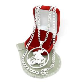 Corrente Masculina 50Cm 5Mm São Jorge Folheada Prata CR847 é uma jóia perfeita para homens que buscam beleza, qualidade e simbolismo. Com banho resistente em várias camadas de Prata Pura 1000 , a corrente não descasca e mantém sua cor por muito tempo. O comprimento é de 50cm, com largura de 5mm e fecho mosquetão para segurança. O pingente de São Jorge, com 4cm de altura e 9Gr de peso, traz beleza e simbolismo. Acompanha embalagem e é produzida pela marca Wnbijouterias, conhecida por sua qualidade. Banho livre de níquel, tornando a peça antialérgica. Ideal para presentear ou uso próprio. Ean: 7896182892488