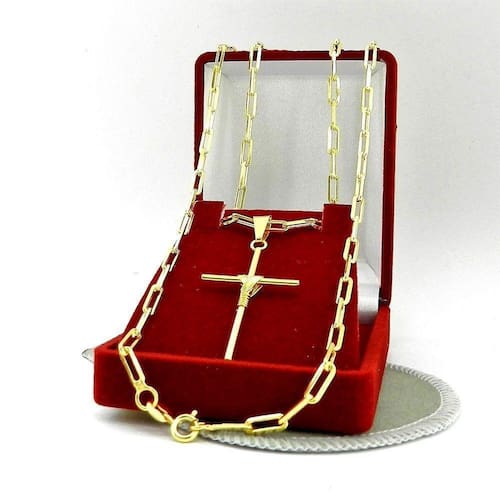 Corrente Masculina 70cm 3mm + Cruz 25x35mm Folheado Ouro CR680C Corrente Masculina 70cm 3mm 8Gr - Fecho Boia + Cruz 25x35m 3Gr Beleza e Qualidade Sempre -Marca: Wnbijouterias -Modelo: 1x1 - 3mm -Modelo Fecho: Boia -Comprimento: 70cm -Largura: 3mm -Peso: 11Gr -SKU Vendedor: CR680C Descrição Técnica: - Produto com banho super resistente. - Processo de Folheação em 3 Camadas de Ouro 18k= 750 - Não descasca, não perde a cor, qualidade garantida - Grande tempo de durabilidade. - Acompanha Embalagem/Porta Jóia - Todas as Fotos são Reais do Produto Acompanha: Certificado de garantia -Garantia apenas para descascamento do banho da jóia. -A garantia não cobre defeitos de mau uso, aranhões ou quebra de partes da jóia. Contra Indicações: - Não usar creme, shampoo, perfume, protetor solar e outros cosméticos por cima da jóia. - Evitar banho de mar Devido a oxidação da água Salgada - Evitar banho de piscina Devido a oxidação do Cloro e outros produtos O que você GANHA comprando em nossa loja: - Qualidade Banho Super Resistente - Antialérgico Não usamos Níquel em nosso banho - Beleza e Acabamento Caimento perfeito ao usar