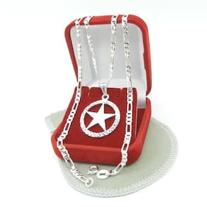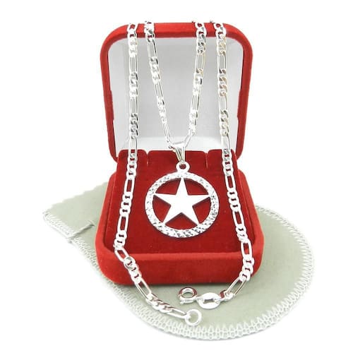 O destaque dessa corrente é o pingente em formato de estrela, com 25mm de tamanho. Ele é folheado a prata, o que garante um brilho duradouro e resistência ao desgaste. O modelo 3x1 proporciona um visual único e estiloso.