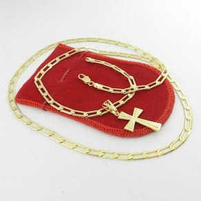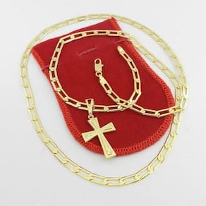 Corrente Masculina 80cm 5mm + Cruz 30mm Folheado Ouro CR508A Corrente Masculina 80cm 5mm 17Gr - Fecho Mosquetão + Cruz 20x30mm 5Gr Beleza e Qualidade Sempre -Marca: Wnbijouterias -Modelo: 1X1 -Modelo Fecho: Mosquetão -Comprimento: 80cm -Largura: 5mm -Peso: 17+5Gr Descrição Técnica: - Produto com banho super resistente. - Processo de Folheação em 3 Camadas de Ouro 18k= 750 - Não descasca, não perde a cor, qualidade garantida - Grande tempo de durabilidade. - Acompanha Embalagem/Porta Jóia - Todas as Fotos são Reais do Produto Acompanha: Certificado de - apenas para descascamento do banho da jóia - não cobre defeitos de mau uso, aranhões ou quebra de partes da jóia Contra Indicações: - Não usar creme, shampoo, perfume, protetor solar e outros cosméticos por cima da jóia. - Evitar banho de mar Devido a oxidação da água Salgada - Evitar banho de piscina Devido a oxidação do Cloro e outros produtos - Qualidade Banho Super Resistente - Antialérgico Não usamos Níquel em nosso banho - Beleza e Acabamento Caimento perfeito ao usar Ean: 7896182742752