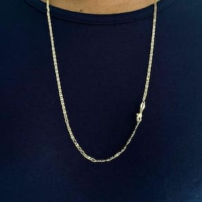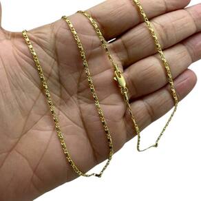Corrente Piastrine 1,5mm Fecho Mosquetão Banhado a Ouro Detalhes do Produto: Material: ligas metálicas de alta qualidade, especialmente tratadas para fixação e absorção do ouro, com acabamento em verniz protetor. Aparência: visual idêntico ao ouro maciço. Produção: artesanal, com atenção meticulosa aos detalhes. Banho: 10 camadas espessas de ouro 18k, finalizadas com verniz antialérgico . Elos: soldados varia conforme o modelo . Pedras: zircônias brilhantes cravejadas quando aplicável . Tamanhos Disponíveis: Cordões Masculinos: 70cm padrão e 60cm sob consulta/Pedido Via Chat . Cordões Femininos: 50cm padrão e 45cm sob consulta/Pedido Via Chat . Pulseiras: 21cm padrão ; tamanhos de 18cm a 23cm sob consulta/Pedido Via Chat. Pingentes: conforme imagens; consulte para mais detalhes via chat. Espessuras Recomendadas para Cordões / Pingentes: P: 1mm a 4mm M: 4mm a 8mm G: 6mm a 13mm Gg: 12mm a 18mm Incluso na Compra: Saquinho de organza para armazenamento seguro. Caixa elegante, perfeita para presente. Cupom de desconto para a próxima compra. Flyer com outros produtos da coleção. Carta de agradecimento personalizada. Adesivo da marca ToJoia18k. Informações Adicionais: : 6 meses termos acompanham o produto . Devolução: 7 dias para devolução sem questionamentos. Envio: despacho em até 24 horas úteis após confirmação do pagamento. Cuidados com a Peça: Evite contato com produtos químicos; aguarde o perfume secar antes de usar. Evite contato com shampoo, condicionadores e suor excessivo. Armazene em local seco, preferencialmente no saquinho de organza fornecido. Uso no mar e piscina é permitido; lave com água corrente e sabão neutro após. Por que Escolher a ToJoia18k Semi-joias luxuosas que combinam estilo, qualidade e sofisticação. Banho espesso de ouro 18k, garantindo brilho duradouro e acabamento impecável. Design exclusivo e produção artesanal, perfeitos para qualquer ocasião. Materiais premium que asseguram durabilidade. Ao escolher uma semi-joia ToJoia18k, você investe em qualidade, elegância e uma experiência única. Aguardamos sua compra Observação: pode ocorrer variação no fecho raramente . Imagens reais, sem edição. Qualquer dúvida, estamos à disposição para esclarecimentos. Marca: Não Informado