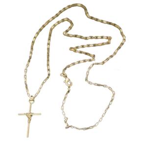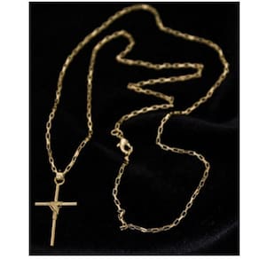 CORRENTE TIJOLINHO VENEZIANA FECHO LAGOSTA (1,5MM) & PINGENTE CRUZ FIO PALITO TRADICIONAL (PEQUENO) - BANHADO EM OURO 18K