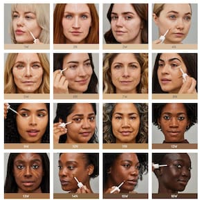 - Corretivo líquido Allover disponível em 16 tons realistas à pele.