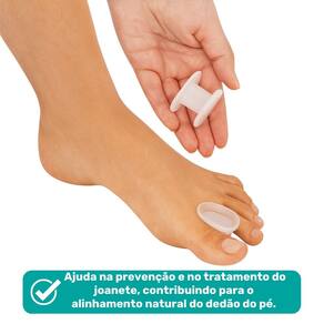 Função corretiva: Ajuda na prevenção e tratamento do hallux valgus (joanete), contribuindo para a correção progressiva do alinhamento do dedão do pé.