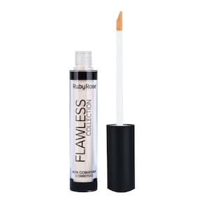 Corretivo líquido para todos os tipos de pele. Ruby Rose Flawless Collection possui alta cobertura e deixa a pele sequinha sem craquelar.