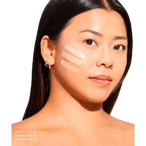 Modo de usar: Com um pincel ou esponja, aplique o corretivo na área dos olhos ou por todo o rosto, do centro para as extremidades, espalhando bem até obter um acabamento uniforme.