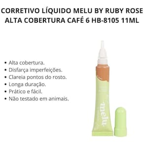 Corretivo Líquido Melu By Ruby Rose Alta Cobertura Café 6 Hb-8105 11Ml Corretivo Líquido Melu Café 6