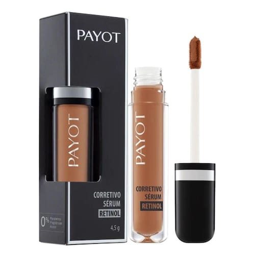 Corretivo líquido.Payot Sérum Retinol disfarça imperfeições, olheiras, sinais de cansaço e uniformiza o tom da pele. É maquiagem e tratamento cosmético em um só produto